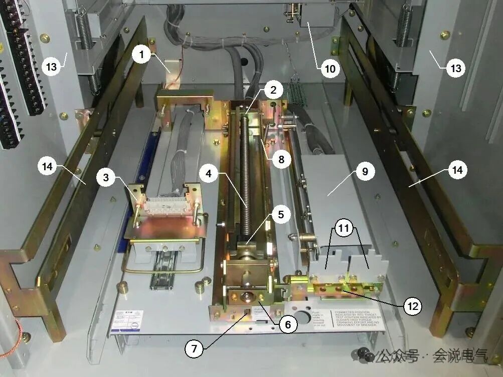 另外,IEEE C37.20.2标准要求断路器从开关柜抽出需要释放弹簧储能,也是通过底板上的机构实现,