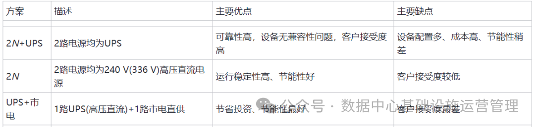 表1 数据中心常见的供电类型