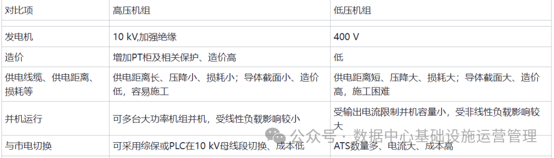 鉴于数据中心对备用电源的需求较大,综合考虑备用容量、线路并机、线路损耗等因素,本项目采用10 kV高压柴油发电机组。