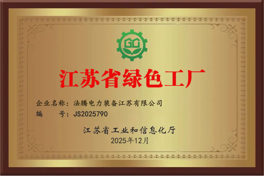 法腾电力被授予“江苏省绿色工厂”称号!