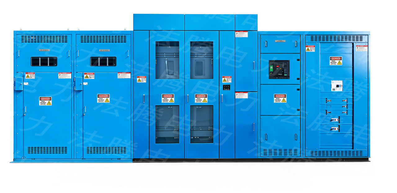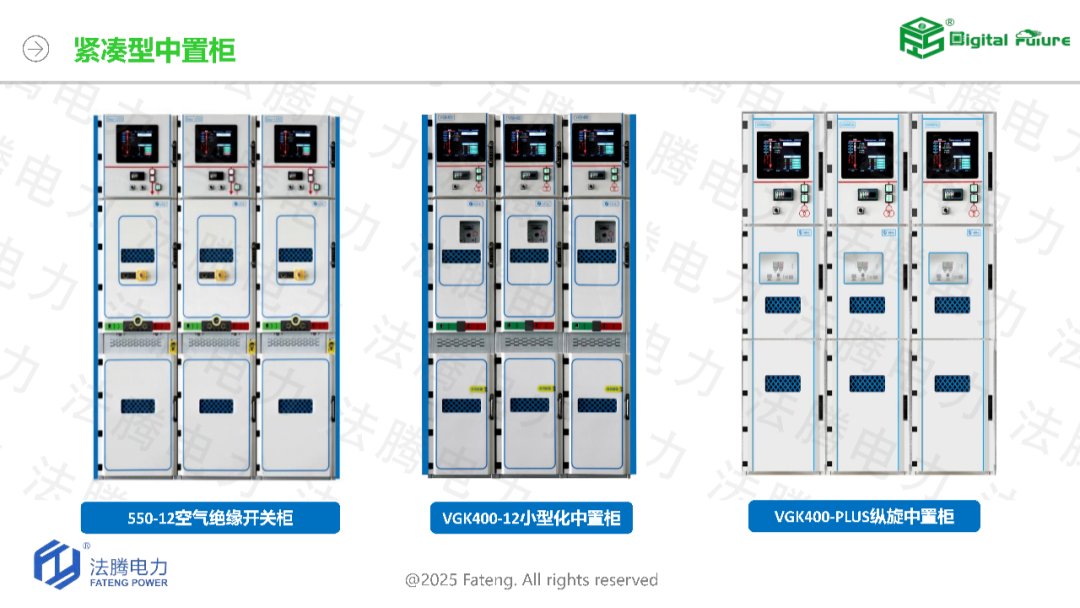 02 紧凑节能设计,引领行业变革聚焦 “小型化、智能化、低碳化” 产品研发,法腾电力国内首创 400mm 超紧凑型纵旋开关柜系列,实现同类产品占地面积最小化;预装模块化 E-House 解决方案更能节省 60%-80% 占地,建设周期缩短至 3 个月(仅为常规变电站的 1/4),且所有电气设备均经过防腐处理,使用寿命更长、耗能更低,完美契合国家节约土地与节能降耗政策。