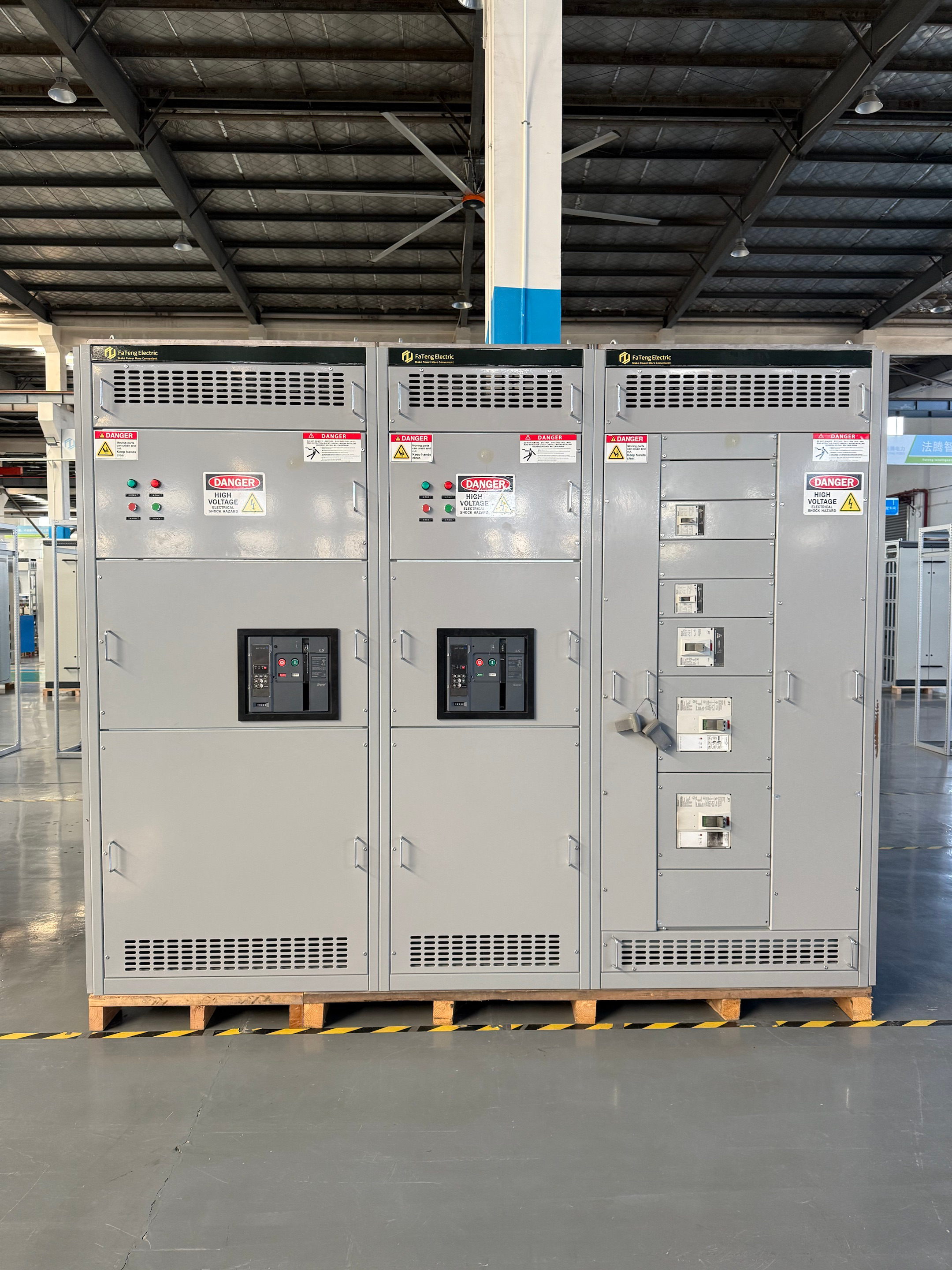 配电盘属于分配电设备有前部进入和后部进入等不同,框架断路器作为进线隔离,塑壳断路器作为出线,可以是固定式的,或是快速插拔式结构,采用成组安装结构,即塑壳断路器水平安装,一边连接垂直母排,另一边直接连接电缆。进线可以是柜前连接或是柜后连接,出线电缆侧出线。配电盘也有装抽出式框架断路器的设计,是对塑壳断路器的一个互补方案。