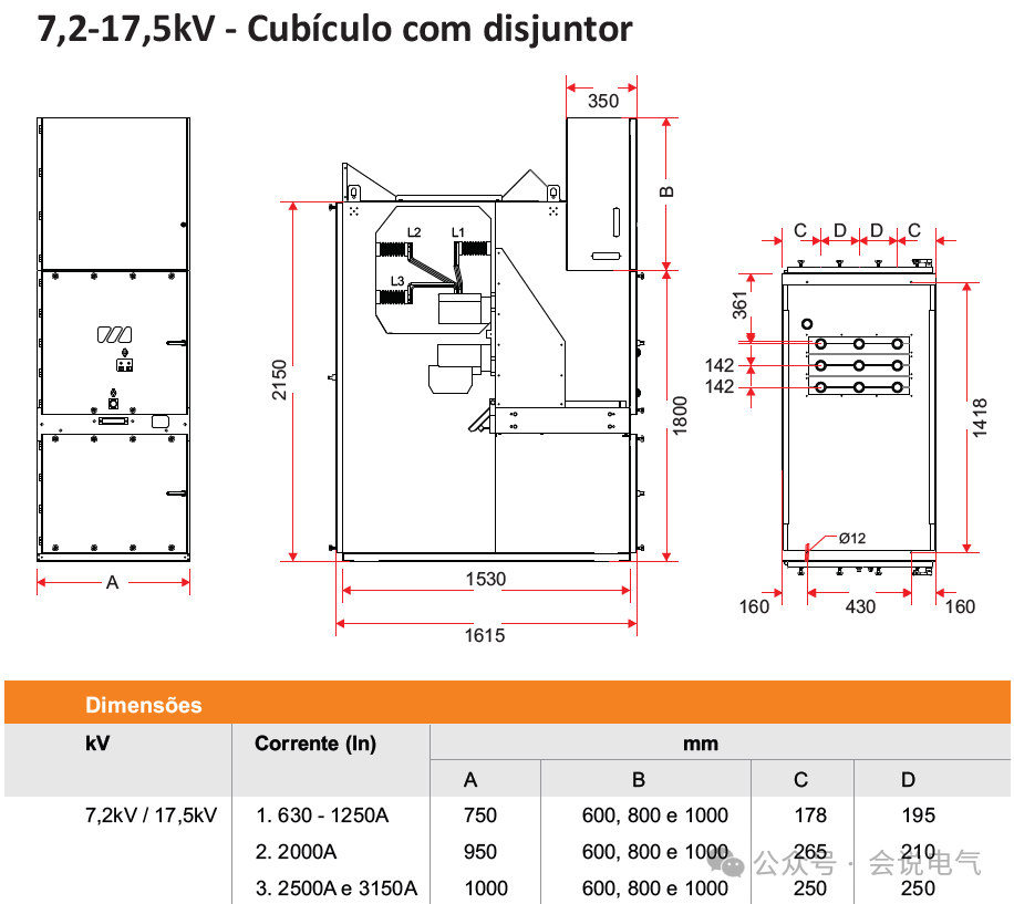因此国外项目11/12/13.8/17.5kV开关柜1250A的宽度一般是600/650/700mm,而3150A开关柜有900/1000mm等。这里面11、13.8kV 是系统电压,而对于开关柜额定电压是12、17.5kV。