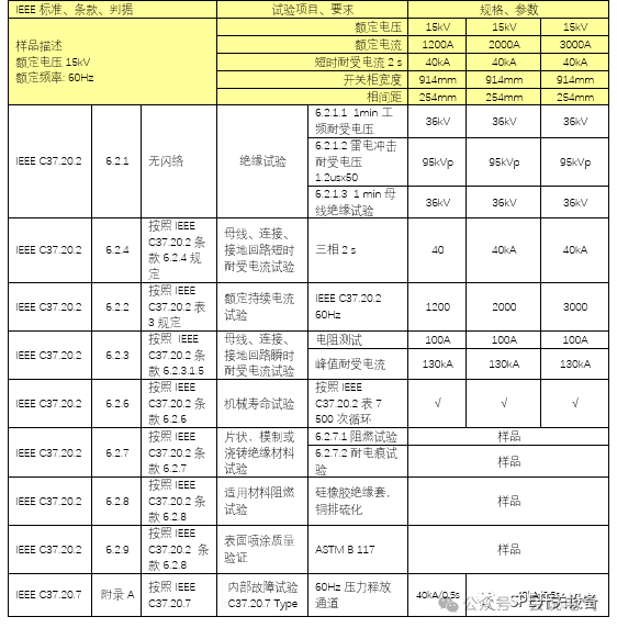 说明:美标ANSI开关柜所有额定电流规格的柜宽相同,相间距、极间距相同。对于相同63kA的开关柜,只进行1200A柜型的动热稳定试验是可以覆盖2000/3000A的柜型。如上述基础条件不同,则无法覆盖。