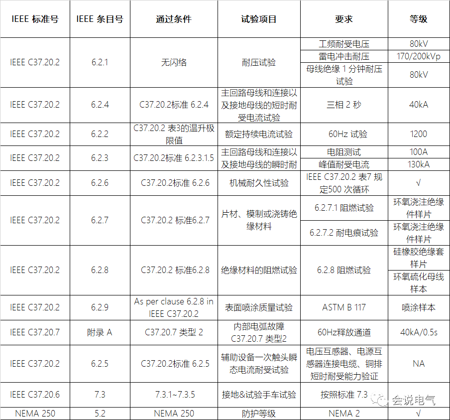美标开关柜需要通过如下试验,并通过UL认证,以38kV 1200A 40kA为例,开关柜试验项目如下。