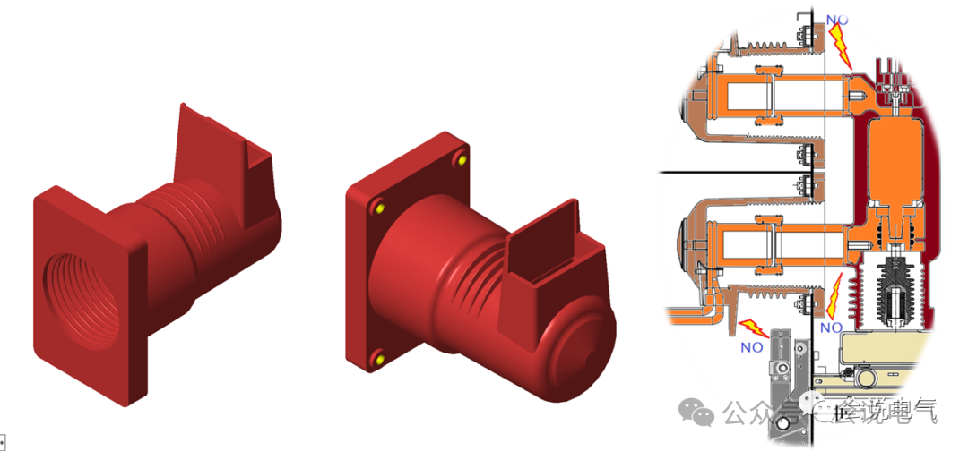3)出线侧加高凸出,形成接地开关在打开时的刀与触头盒铜排间的绝缘阻挡;
